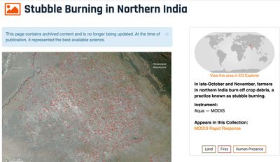 The Indian farm state of Punjab has two growing seasons: one from May to September and another from November to April. Many farmers rotate between crops, planting rice in May and wheat in November. In order to quickly prepare their fields for the wheat crop, many farmers simply burn leftover plant debris after harvesting rice. The practice is known as paddy stubble burning.